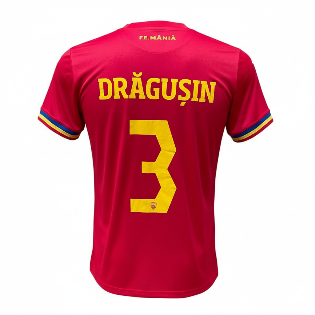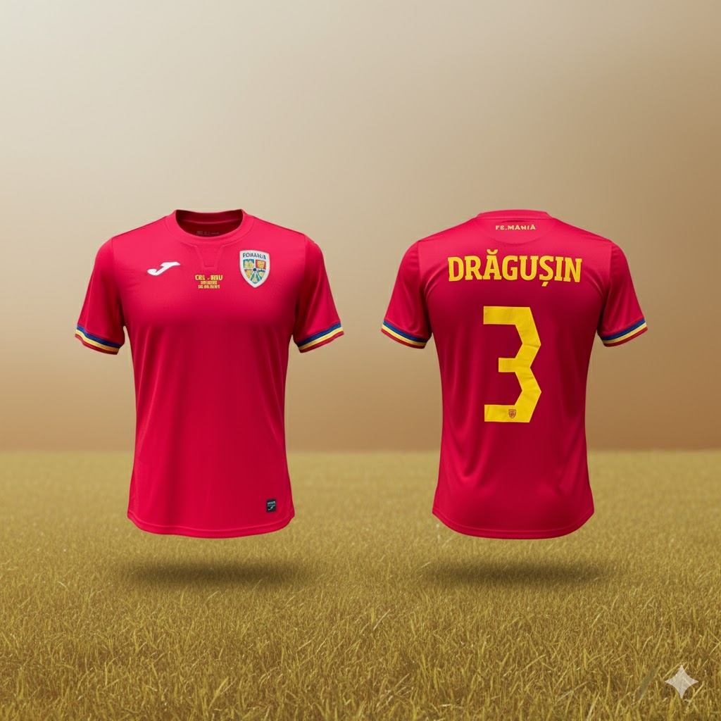 CAMISETA SELECCION RUMANA DE UTILERIA TALLA XL slim fit, # 3 DRAGUSIN, usada en partido contra la SELECCION COLOMBIANA el 26 de marzo en MADRID, ESPAÑA, partido amistoso, única unidad, no tiene cambio ni devolución.